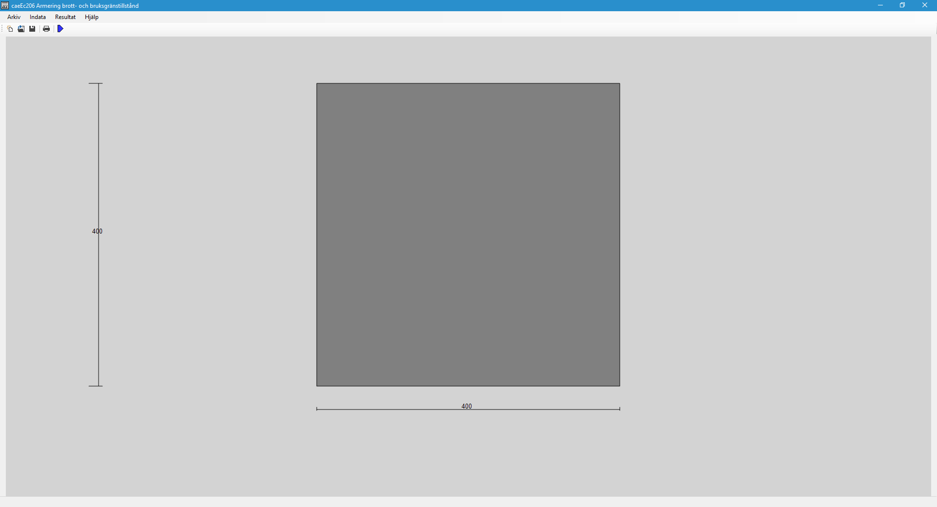 Dimensionering av betongtvärsnitt i brottgränstillstånd, utdata är drag-, tryckarmering och effektiv höjd.