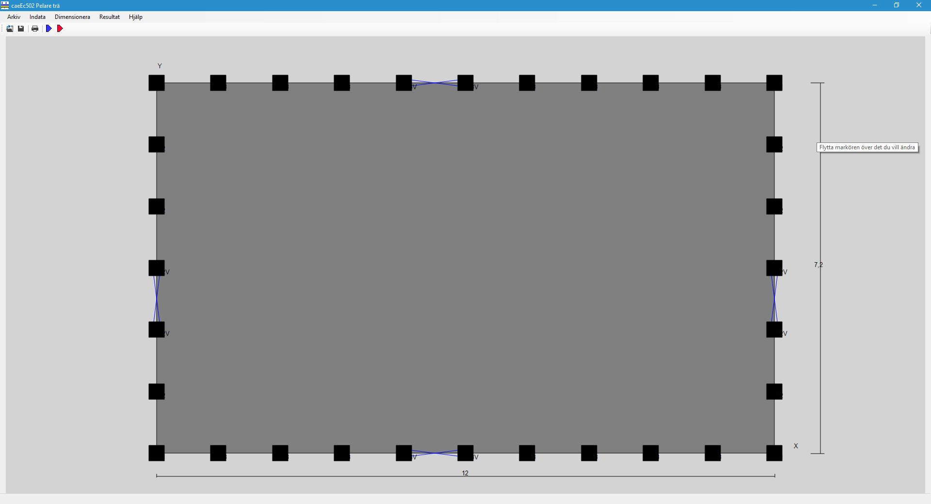 Dimensionering av pelardäck med hjälp av strimlemetoden, utdata är armeringsmängd och dimensionerande moment i x- och y-riktning.
