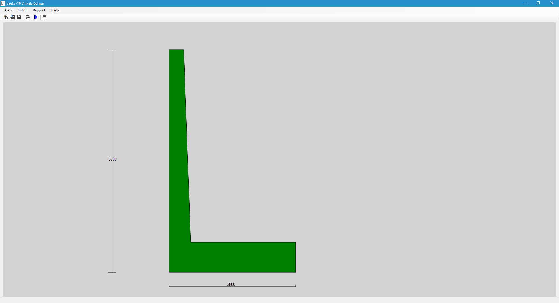 Analys av vinkelstödmur i brott- och brukgränstillstånd, utdata är snittkrafter och grundtryck.