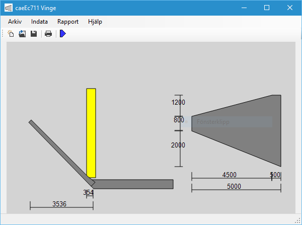 Analys av raka och sneda vingar i brott- och brukgränstillstånd, utdata är snittkrafter.